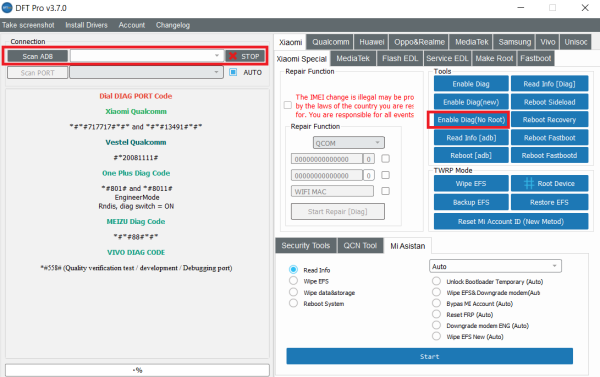 بداية قم بتفعيل DIAG MODE كما في الصورة